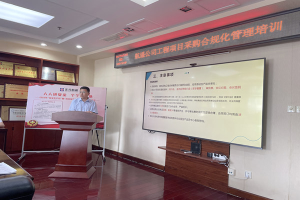 為規(guī)范工程項目采購管理,有效保障項目常規(guī)化運行,6月5日下午,航遙公司在濟(jì)南組織了工程項目采購合規(guī)化管理培訓(xùn)。
